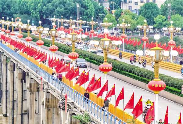 安康:國(guó)慶氛圍濃 滿城“中國(guó)紅”