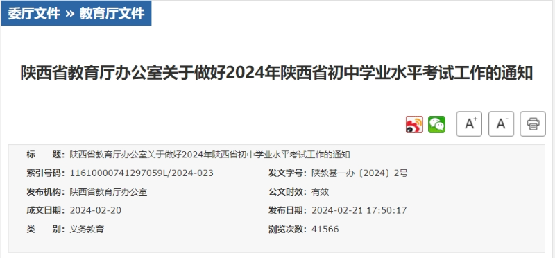 2月21日記者從陜西省教育廳獲悉,2024年陜西省初中學業(yè)水平考試工作相關安排出爐,對考試對象、考試科目、各科目試卷滿分值及考試時長等做了明確。突出學生綜合素質(zhì)的考查,并通過優(yōu)化命題形式,引導減少死記硬背和“機械刷題”。任何單位與個人不得根據(jù)初中學業(yè)水平考試成績給學校和學生排隊或以任何形式公布名次。
