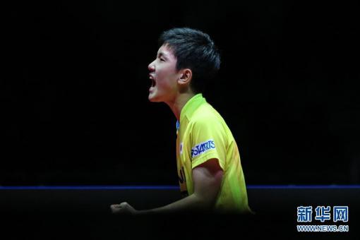 12月16日,張本智和在比賽中慶祝得分。 當(dāng)日,在韓國(guó)仁川進(jìn)行的2018國(guó)際乒聯(lián)世界巡回賽總決賽男單決賽中,日本選手張本智和以4比1戰(zhàn)勝中國(guó)選手林高遠(yuǎn),奪得冠軍……
