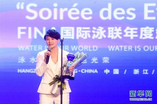 12月16日,中國(guó)運(yùn)動(dòng)員施廷懋在獲得國(guó)際泳聯(lián)2018年度跳水最佳女子運(yùn)動(dòng)員獎(jiǎng)后發(fā)表感言。 當(dāng)日,2018年度國(guó)際泳聯(lián)頒獎(jiǎng)盛典在浙江杭州舉行。 新華社記者黃宗治攝……