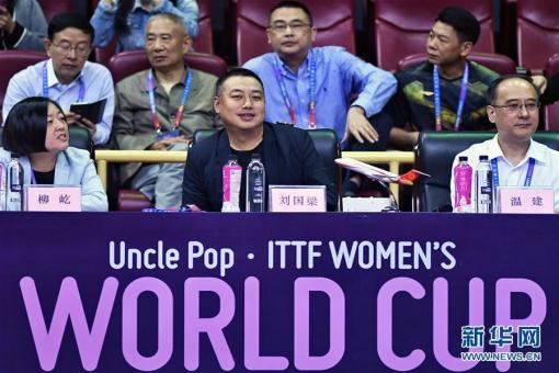 9月29日,劉國梁(前中)在比賽現(xiàn)場觀看比賽。 新華社記者劉坤攝 新華社成都9月29日電(記者許茹)29日,2018國際乒聯(lián)女子世界杯成都開幕,中國乒乓球協(xié)會副主……
