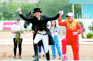 2001年九運(yùn)會(huì)至今,廣東馬術(shù)隊(duì)在每屆全運(yùn)會(huì)上都有2枚金牌入賬,這段時(shí)間也是拜里亞爾森執(zhí)教廣東隊(duì)的時(shí)期,她也和廣東隊(duì)的老將新兵建立了親密的友誼。本屆全運(yùn)會(huì),拜里亞爾森和弟子兩次站上最高領(lǐng)獎(jiǎng)臺(tái),收獲了盛裝舞步團(tuán)體和個(gè)人2枚金牌,這也是她帶隊(duì)史上第一次。廣東馬術(shù)隊(duì)時(shí)隔8年問鼎盛裝舞步團(tuán)體賽,賽后,老將黃焯欽以手掩面、失聲痛哭。拜里亞爾森走上前去,撫摸著戰(zhàn)馬,安慰他!拔业攘颂昧!秉S焯欽說著,與拜里亞爾森緊緊擁抱在一起。