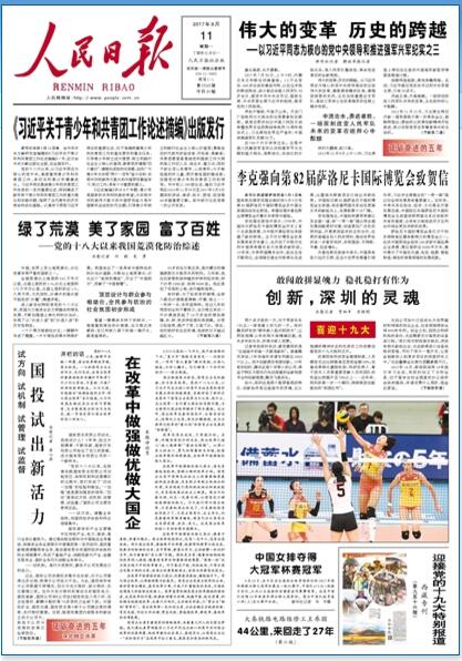 《人民日報(bào)》2017年9月11日01版LfW安康新聞網(wǎng)