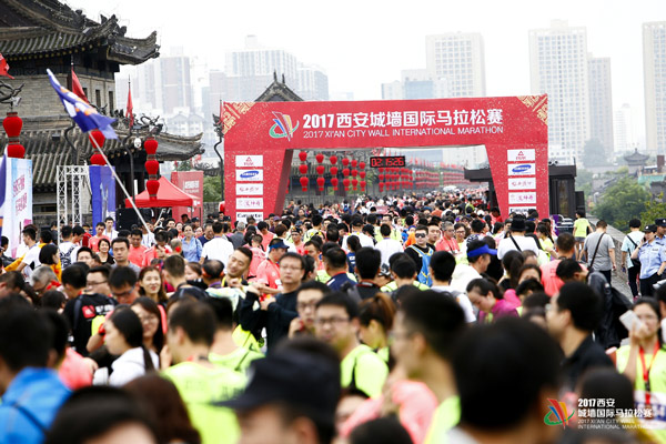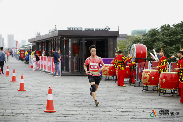 人民網(wǎng)北京9月11日電 2017西安城墻國際馬拉松賽于昨日上午8:00鳴槍開賽。作為世界唯一將賽道設(shè)置在完整城墻之上的馬拉松賽事,城墻馬自舉辦以來就備受廣大跑友的關(guān)注。今年亦是如此,來自美國、澳大利亞、法國、日本等13個國家和地區(qū)的3000名運動員齊聚古城墻,共同見證了這場歷史文化與體育競技相融合的跑步盛典。