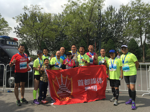 圖為作者在內(nèi)的首都媒體跑團(tuán)參加太馬