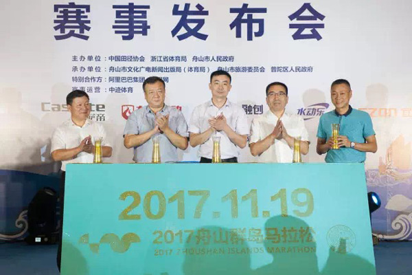 人民網(wǎng)北京9月20日電 2017舟山群島馬拉松將于11月19日上午8:00在舟山開跑。9月19日組委會(huì)舉辦賽事發(fā)布會(huì),就賽事舉辦時(shí)間、規(guī)模、比賽項(xiàng)目及賽事提升、亮點(diǎn)等內(nèi)容進(jìn)行發(fā)布。舟山市人民政府副秘書長(zhǎng)苗成武、舟山市文化廣電新聞出版局(體育局)局長(zhǎng)陸深海、中共舟山市普陀區(qū)委常委、宣傳部部長(zhǎng)李升、舟山市普陀區(qū)人民政府副區(qū)長(zhǎng)楊海濱等出席發(fā)布會(huì)并共同啟動(dòng)賽事。