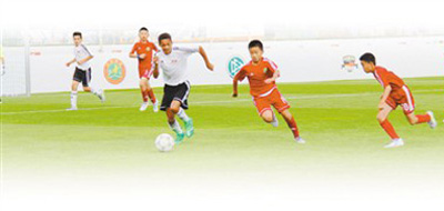 | 					  7月5日,德國柏林奧林匹亞體育場,中德青少年足球友誼賽正在舉行。 |