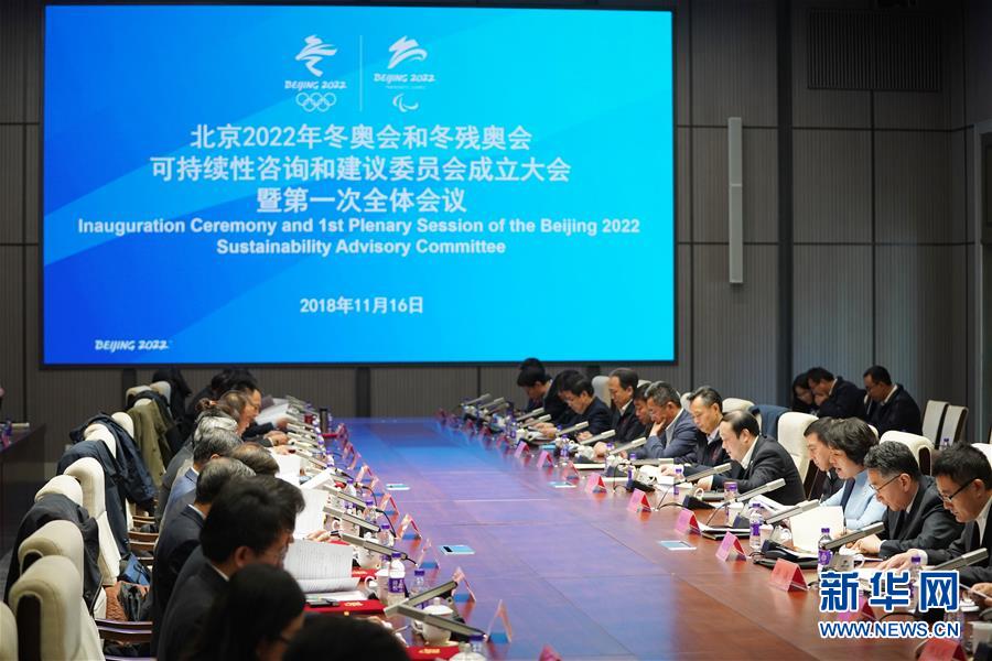 ↑11月16日,北京2022年冬奧會(huì)和冬殘奧會(huì)可持續(xù)性咨詢(xún)和建議委員會(huì)成立大會(huì)暨第一次全體會(huì)議在北京冬奧組委首鋼辦公區(qū)召開(kāi)。 圖為大會(huì)現(xiàn)場(chǎng)(11月16日攝)。 新華社記者鞠煥宗攝